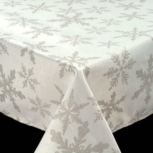 Holiday Snowflakes Metallic Thread Jacquard Woven Tablecloth
