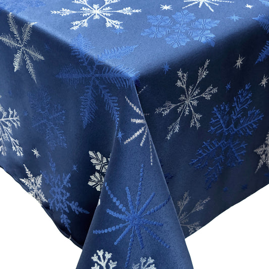 Holiday Blue Snowflakes Metallic Jacquard Woven Tablecloth